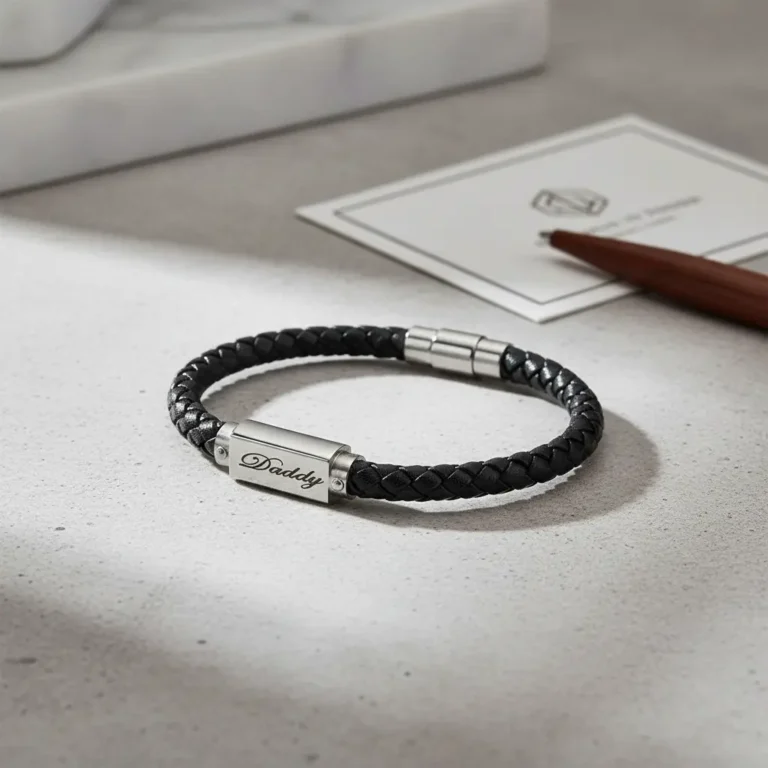 Vienna Leather & Stainless Steel Mens Bracelet – Black